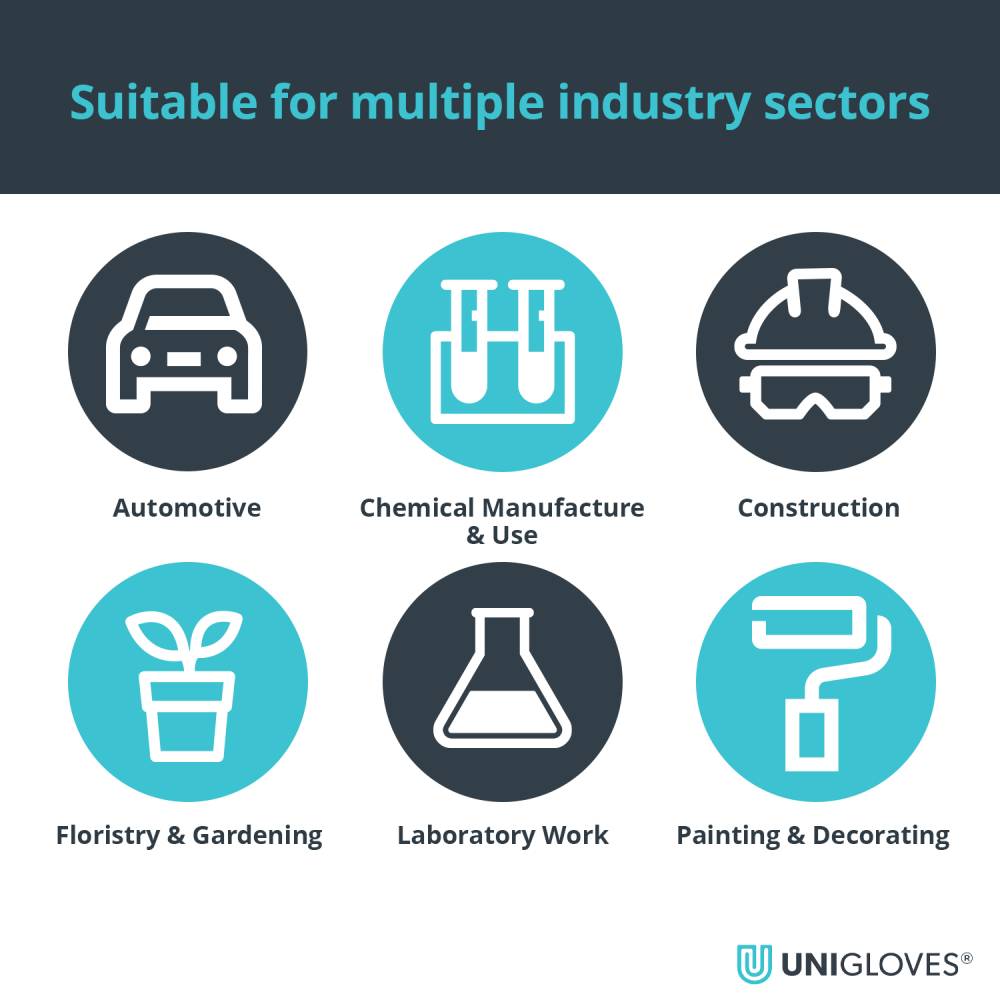 | Manufactured using high-quality nitrile | High-quality nitrile combines comfort with puncture and chemical resistance |